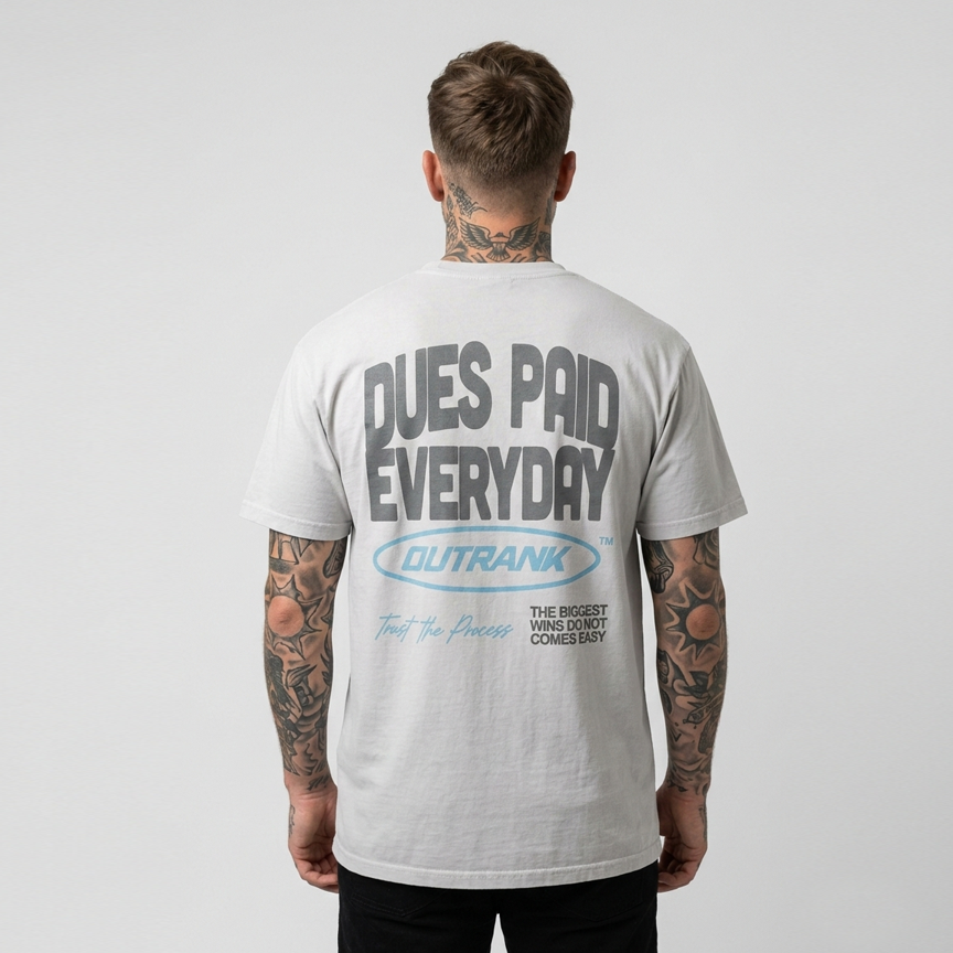 Introducing Dues Paid Everyday T-Shirt designed specifically to complement the Air Jordan 5 “Wolf Grey”. This tee is crafted for fans who appreciate both style and comfort, making it the perfect pairing for your sneaker collection. Made from high•quality materials, the shirt features a striking custom design that echoes the signature aesthetics of the “Wolf Grey”.