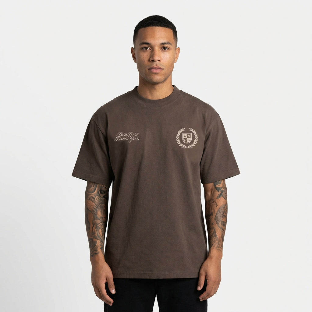 Rich Baby Daddy Gang Premium Crest T-shirt- Mocha